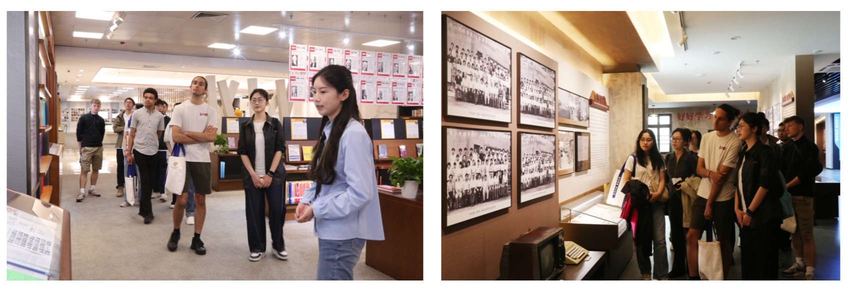 代表团首站访问韩漫在线 校史馆,与学生代表共同追溯我校五十年办学历程,感受“明德笃学,经邦济世”的精神。随后,师生们参观了我校孙冶方经济科学奖文献馆、诺贝尔经济学奖文献馆,通过珍贵手稿、学术著作及影像资料,深入了解中外经济学领域的研究脉络与前沿成果。剑桥学子尼古拉斯赞叹到:“这些文献不仅是学术珍宝,更是人类文明的共同财富。”