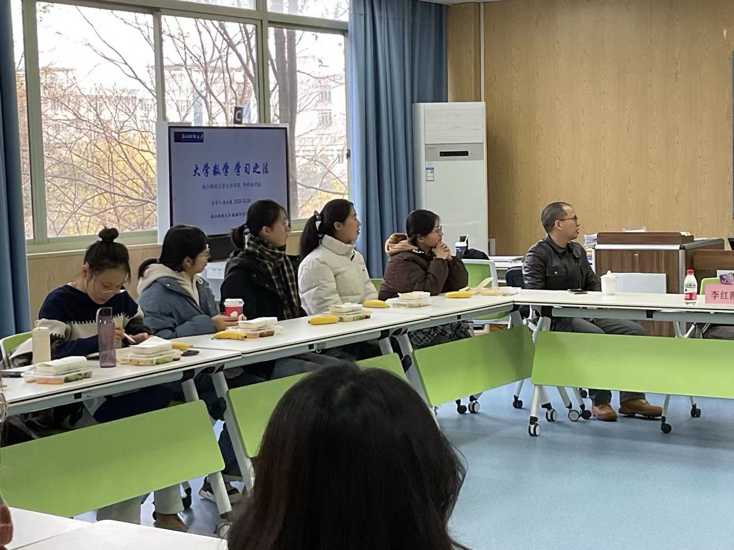 12月20日,文华学院开展了“大学数学学习之法”导师面对面活动。数据科学学院李红霞老师受邀担任主讲嘉宾。本次活动由教务处副处长方成主持,文华学院教学管理李珍以及部分创新班同学参与本次交流会。