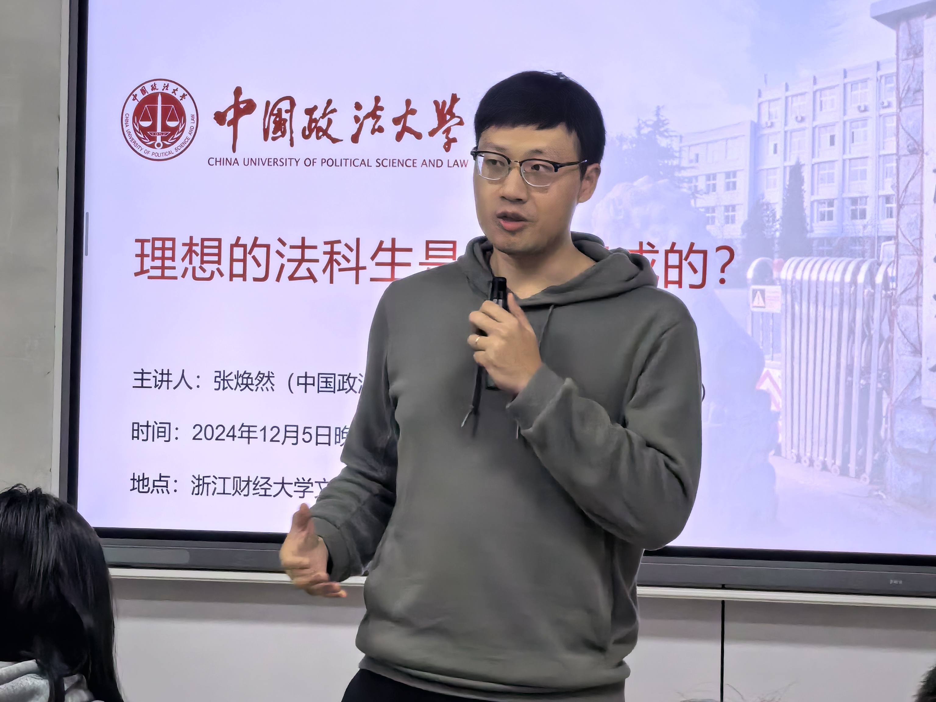 ”第五期在8107教室精彩开讲。德国波恩大学法学博士、中国政法大学民商经济法学院硕士生导师张焕然作“理想的法科生是怎样炼成的?”为题的名师导学讲座。数智法学拔尖班班主任叶玮昱老师主持,数智法学班全体同学参加此次讲座。