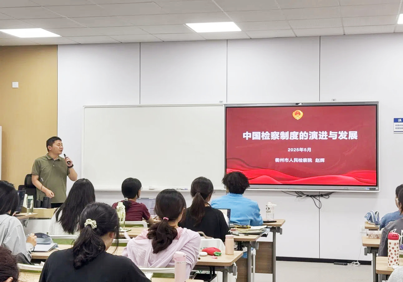”第八期在8104教室成功开展。浙江省衢州市人民检察院法律政策研究室主任赵辉以“中国检察制度的演进与发展”为主题与数智法学拔尖班的同学们进行了一场意义非凡的讲座。讲座由数智法学拔尖班项目主任冯姣教授主持。